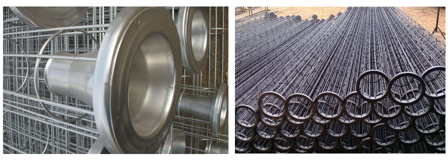 除塵器骨架也稱除塵袋籠,是濾袋的“肋骨”,采用專用設備一次焊接成型,材質為鐵絲或不銹鋼絲,表面后處理采用鍍鋅、噴塑、有機硅等方式。