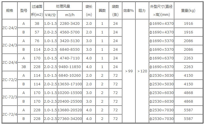 用戶選用應注意對溫度高,濃度大,顆粒細的粉塵應選用A型,反之用B型為宜,如濃度大于15克/米3前面應加一級旋風除塵器。