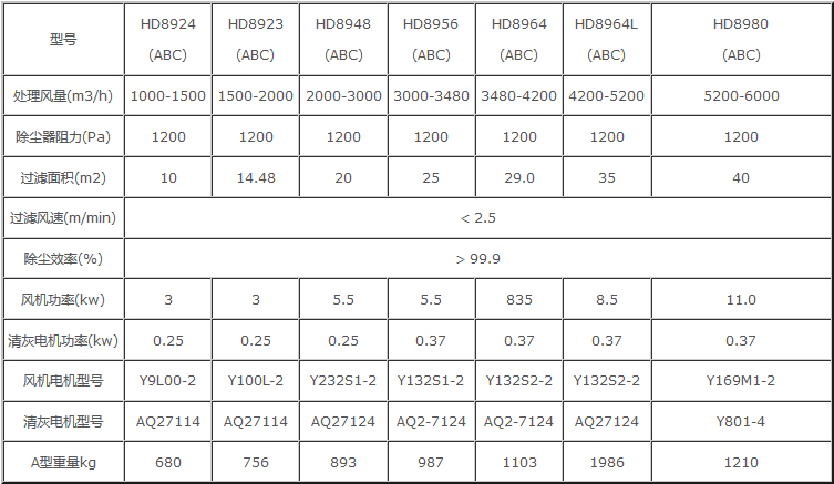HD型單機袋式除塵器有六種規(guī)格: